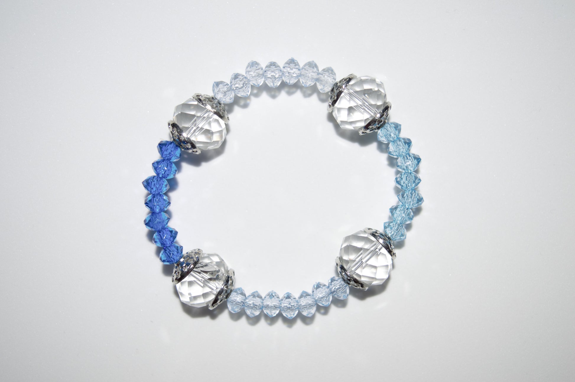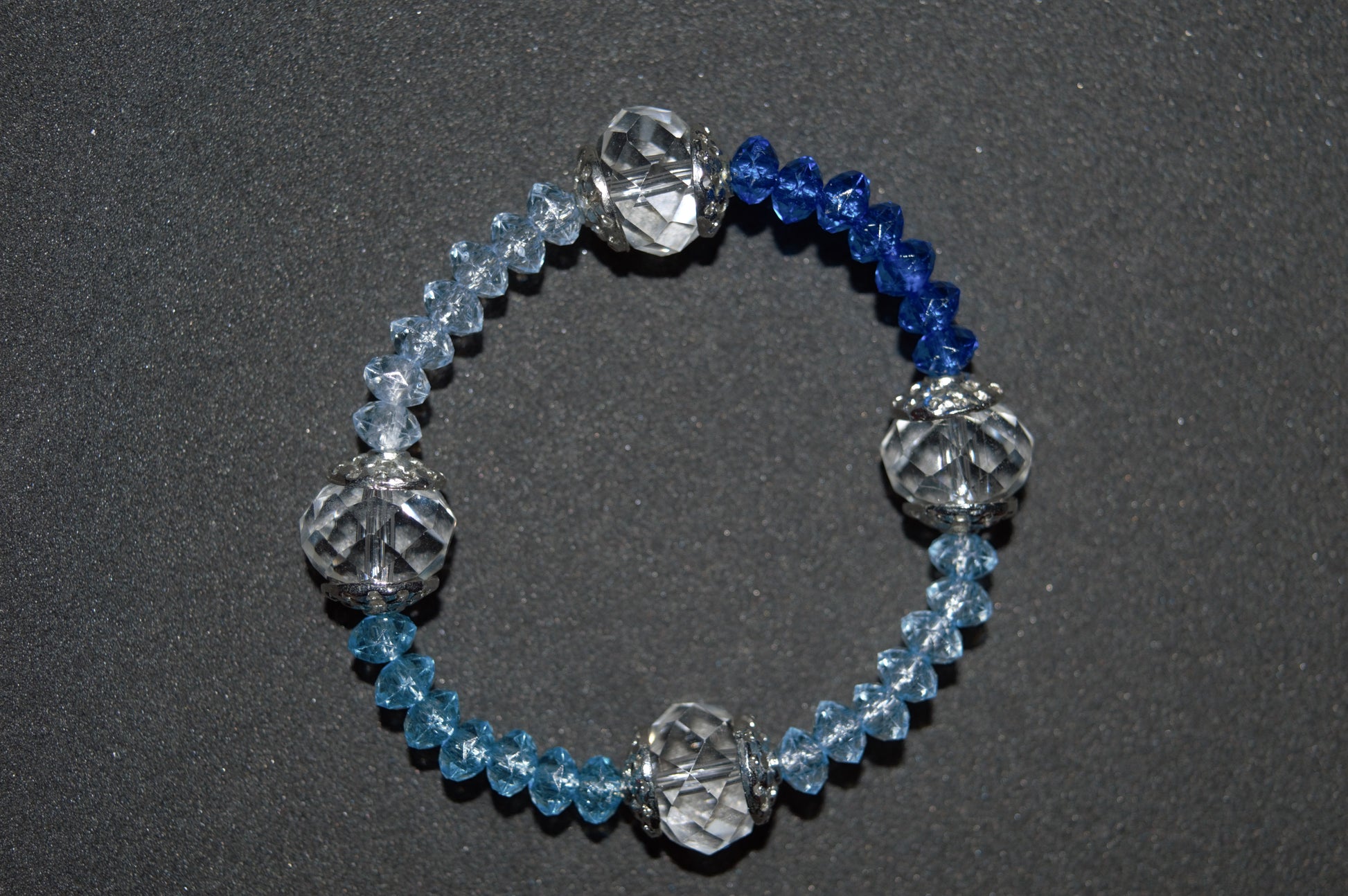 Handmade bracelet made from 4 different tone blue and large clear faceted beads.