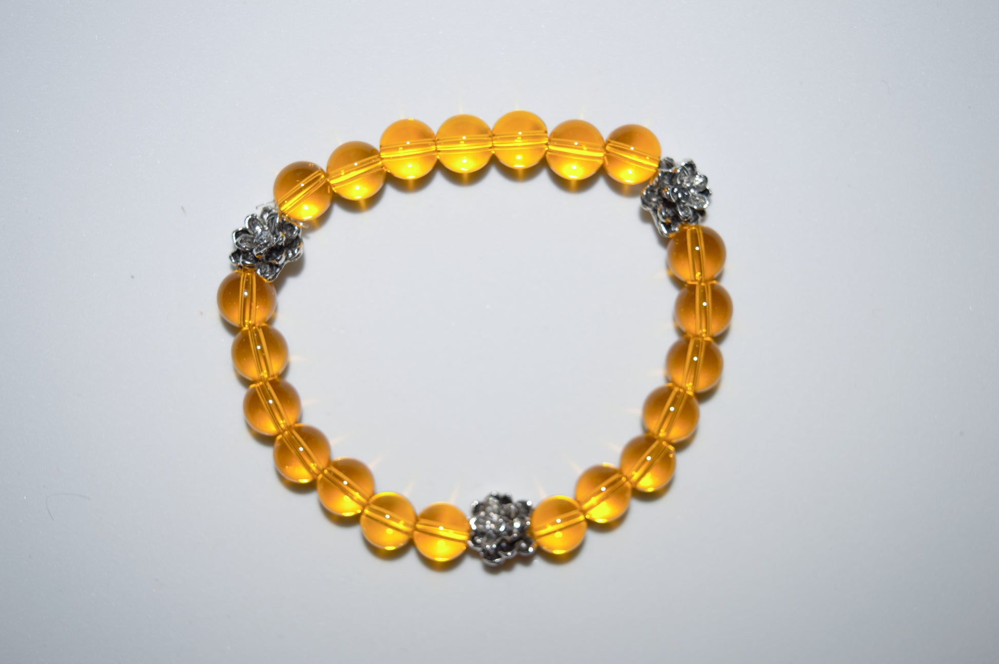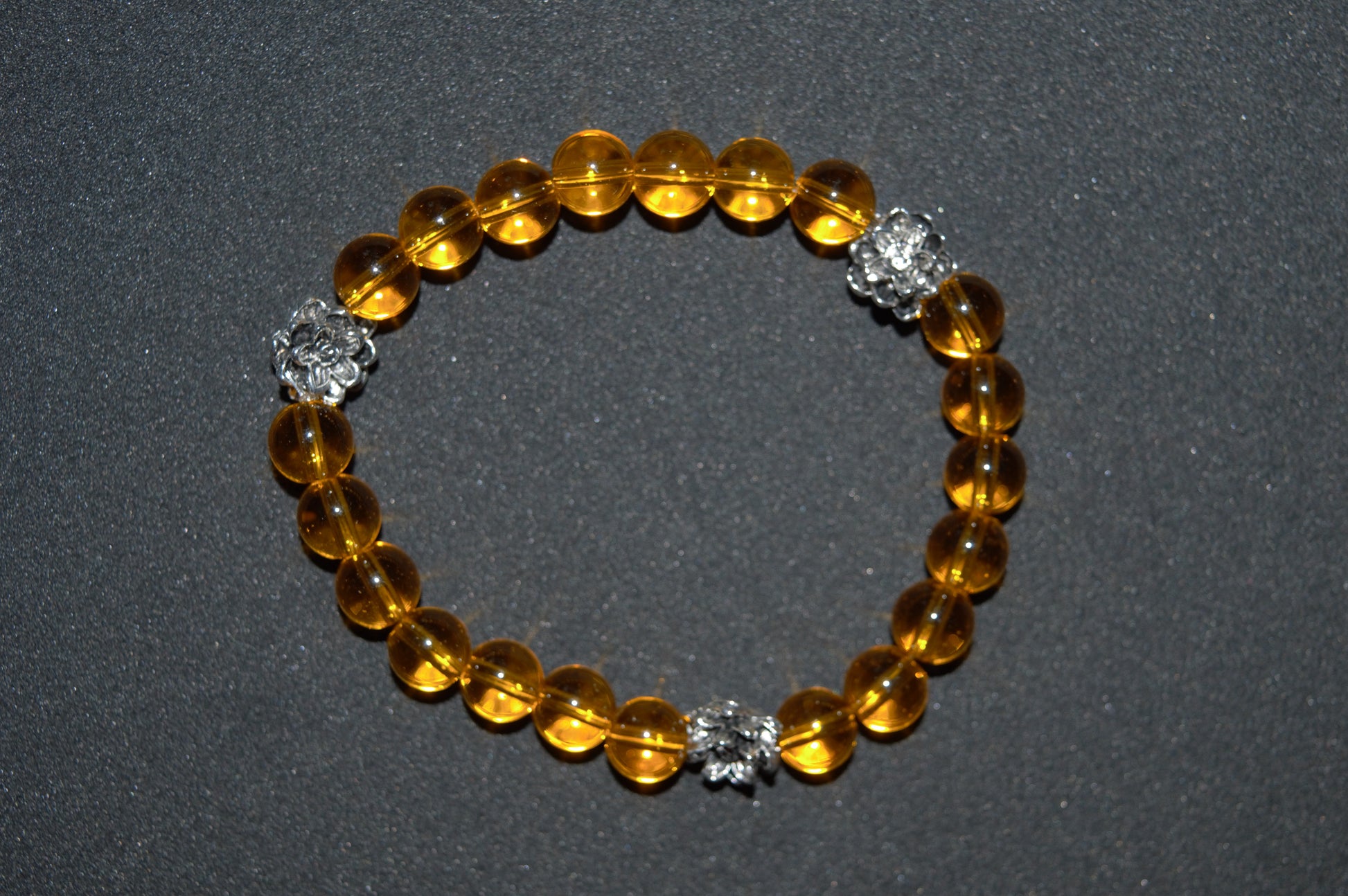 Handmade bracelet made from gorgeous yellow glass and metal flower beads.